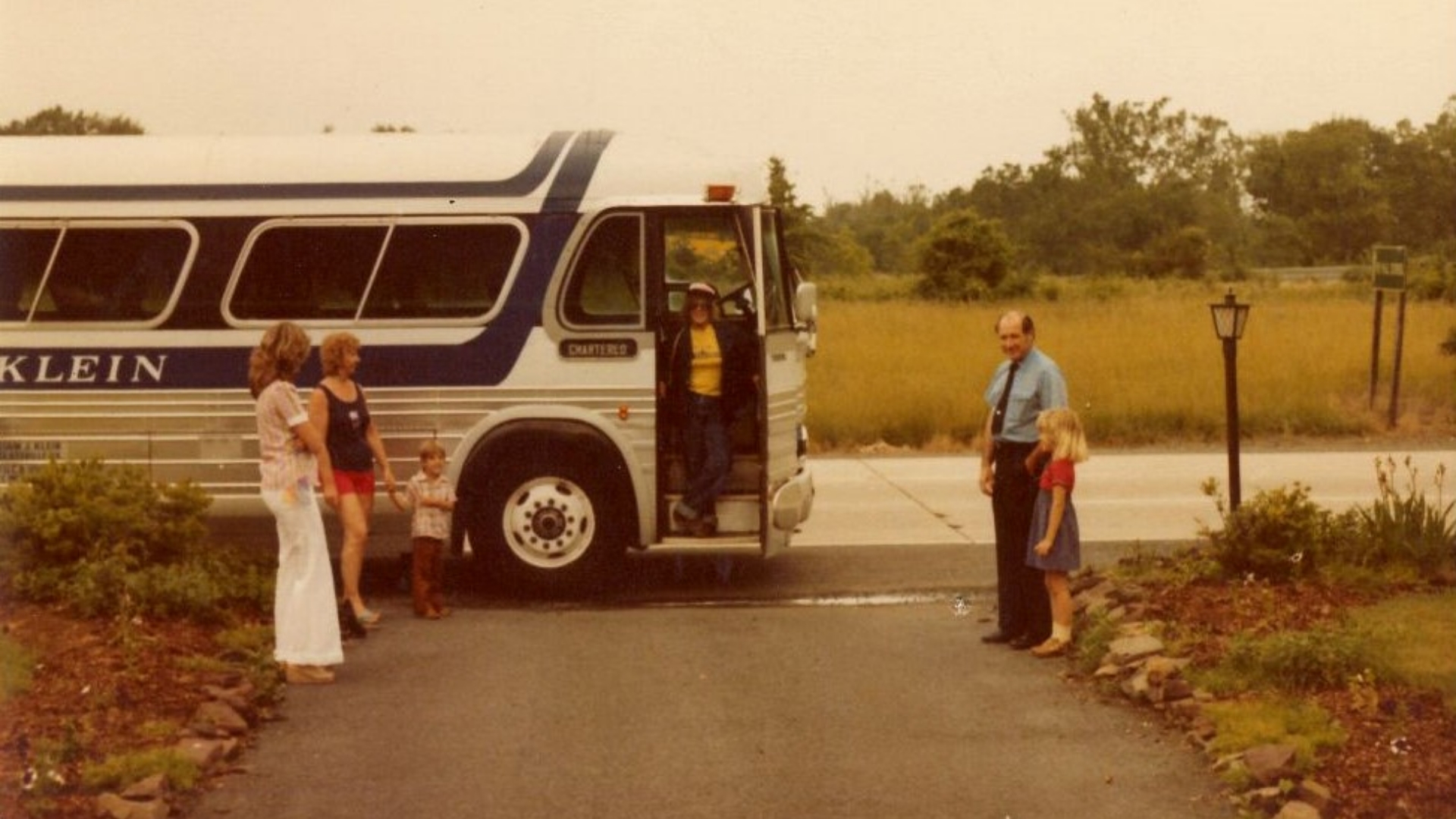 This picture of the Klein family was taken circa 1980 with their 1964 GM 4106, which was one of the company’s first two motorcoaches and was purchased from Capital Trailways in 1979. On the left are Adele Klein (Alison’s mom and retired sales manager of Klein), Mary Klein (former owner and Alison’s grandmother, now deceased), and Andrew Klein (Alison’s brother). On the right are William J. Klein (former owner and Alison’s grandfather, now deceased), and Alison Klein Sherman.