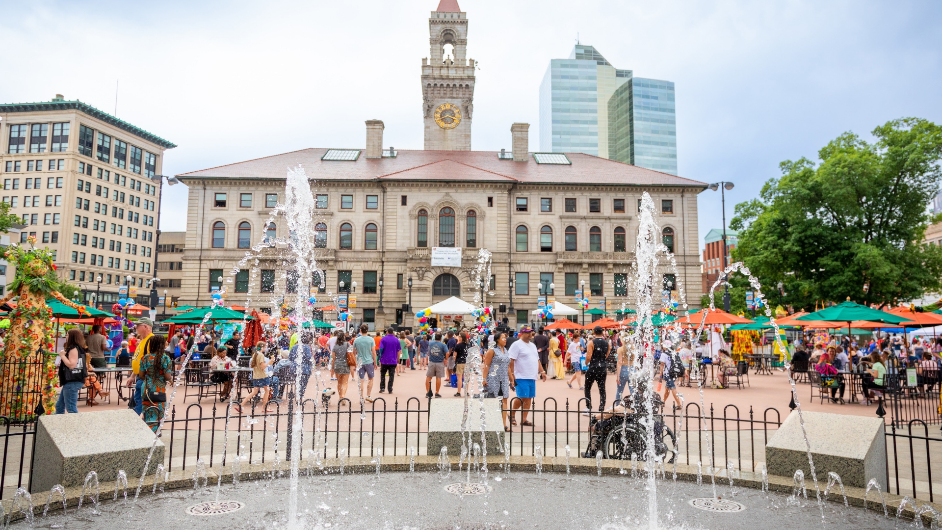 Worcester’s City Hall is a symbol of the city’s wealth and industrial prosperity at the turn of the 20th century. The 1898 Renaissance Revival-style building is constructed of Milford pink granite.