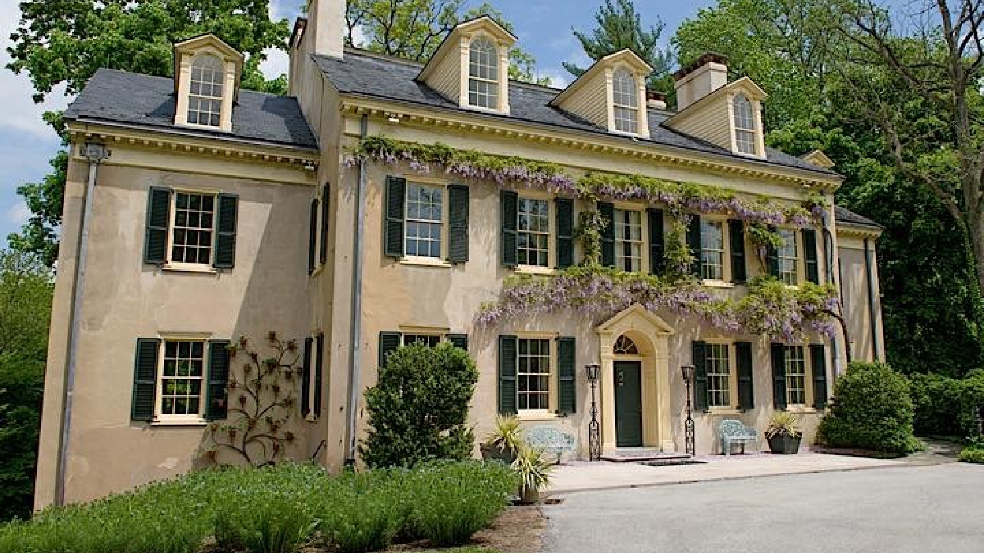 The gorgeous purple blooms of the wisteria adorn the ancestral du Pont home, Eleutherian Mills, each spring.
