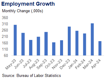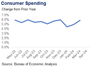 Headline retail sales changed slightly in April, which was a slight disappointment compared to the consensus expectation for a 0.4% month-over-month gain. The weaker-than-expected reading for April was mostly payback for strong sales in March, boosted by online sales promotions and an early Easter. Consumer spending is expected to slow over the rest of the year, but any slowdown is likely to be gradual due to solid household balance sheets and a cooling but healthy labor market.