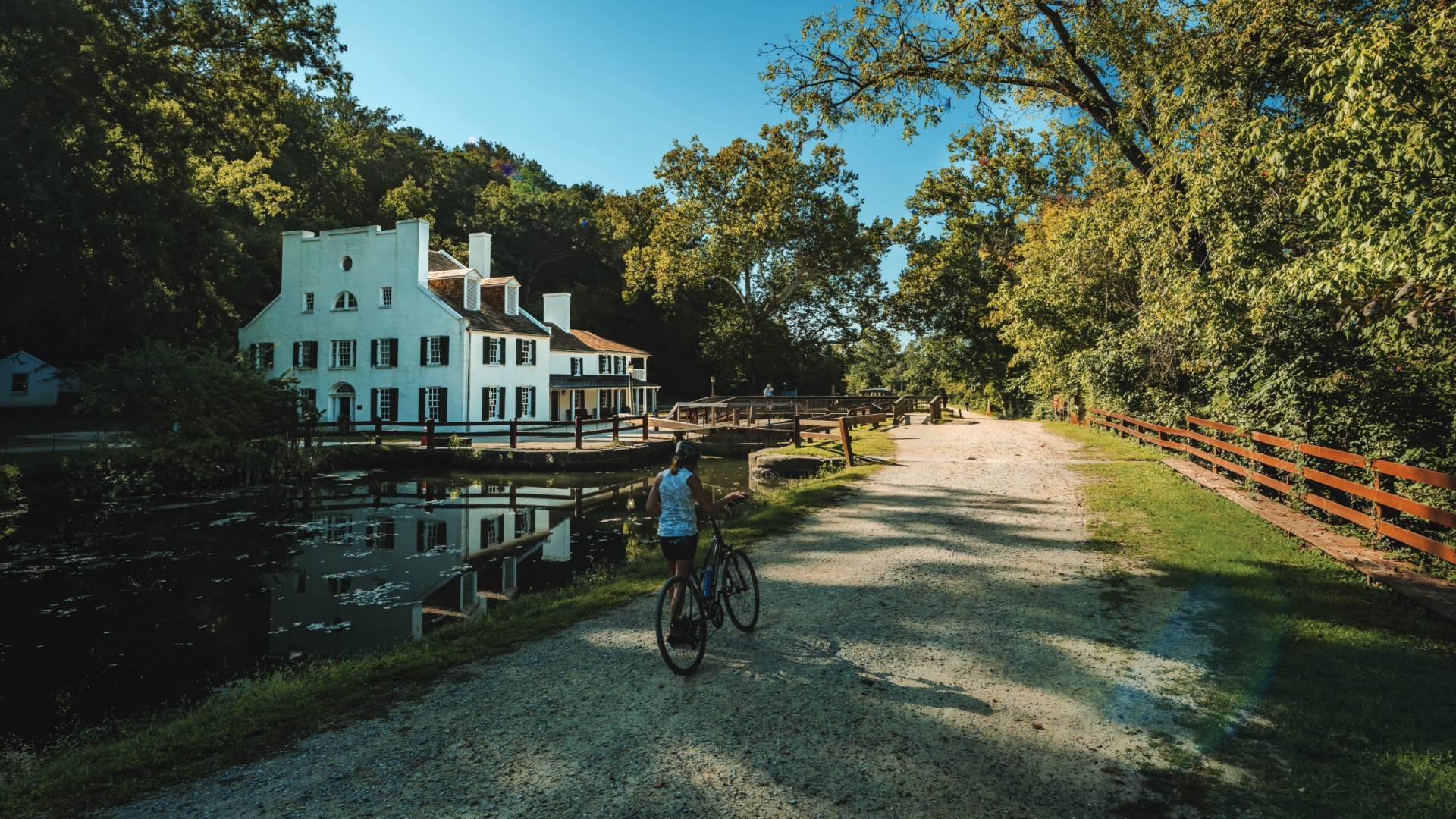 A hike or bike ride along the Cu0026amp;O Canal offers picturesque views of the Potomac River with historic landmarks along the way.