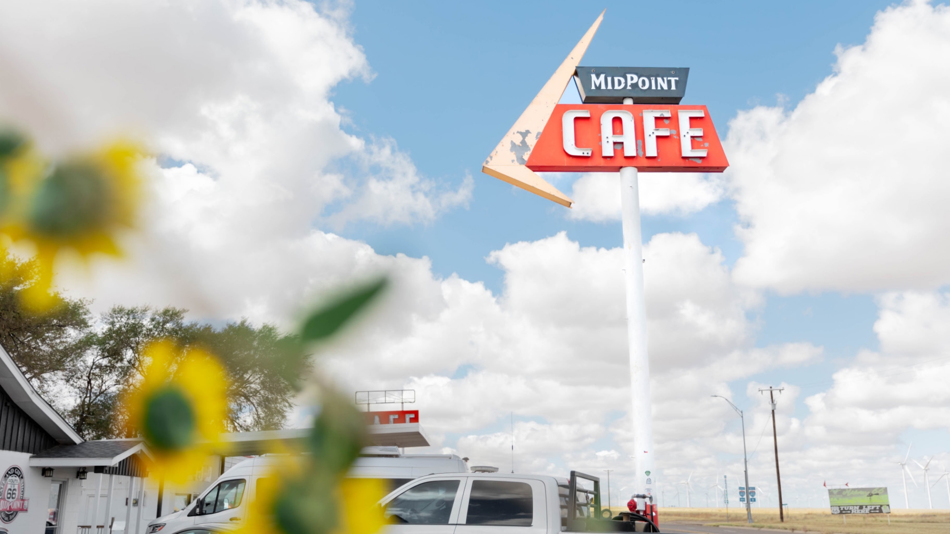 Notable roadside attractions include the U-Drop Inn Café in Shamrock, Cadillac Ranch in Amarillo, and the aptly named Midpoint Café in Adrian, which marks the exact midpoint of Route 66.