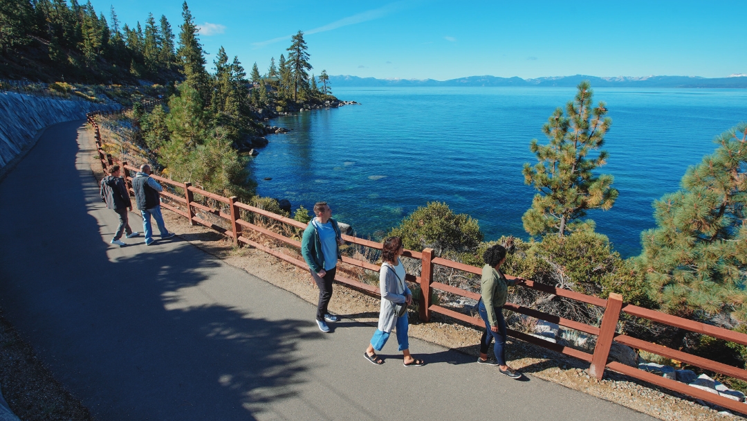 During July and August, the Lake Tahoe Shakespeare Festival at Sand Harbor State Park offers plays set against the backdrop of Lake Tahoe. From Sand Harbor, groups can walk, bike, and hike on the Tahoe East Shore Trail, an accessible paved trail along the shoreline, to Incline Village, a quaint mountain town that offers year-round activities.
