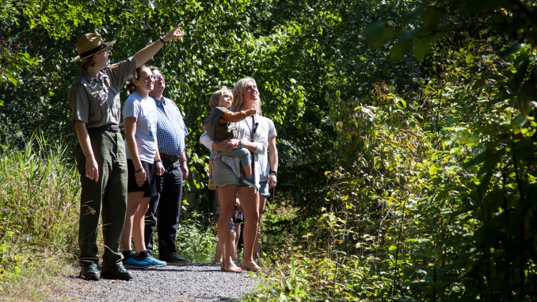 Park Rangers point out natural wonders to groups visiting Rainy Lake.