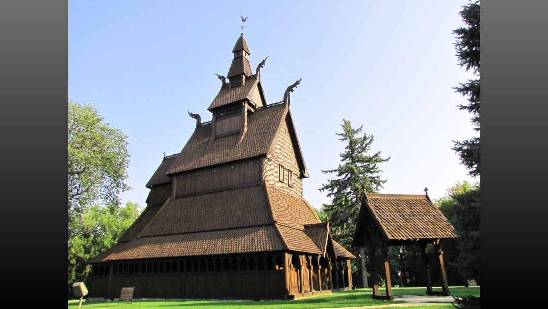 Explore Norwegian culture and historic sites like this replica Hopperstad Stave Church Replica in Moorhead.